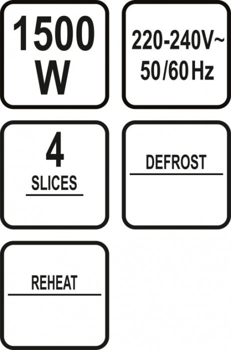 Topinkovač pro opečení 4 krajíců chleba. Pro zajištění preferovaného stupně opečení je k dispozici sedm nastavitelných výkonostních stupňů. Součástí topinkovače jsou dvě misky na drobky, ulehčující čištění. Napájení pomocí 230V zajistí 0,75 m dlouhý kabel, který lze uschovat uvnitř topinkovače.