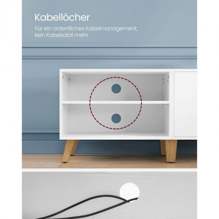 Dopřejte svému domovu nádech moderní jednoduchosti s tímto TV stolkem, který nabízí nejen místo pro vaši televizi, ale i prostor pro dekorace a úložné boxy. Užijte si večery bez nepořádku díky chytrému řešení kabeláže a úložných prostor.