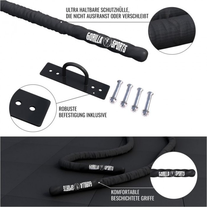Gorilla Sports Posilovací lano včetně držáku, 15 m x 5 cm