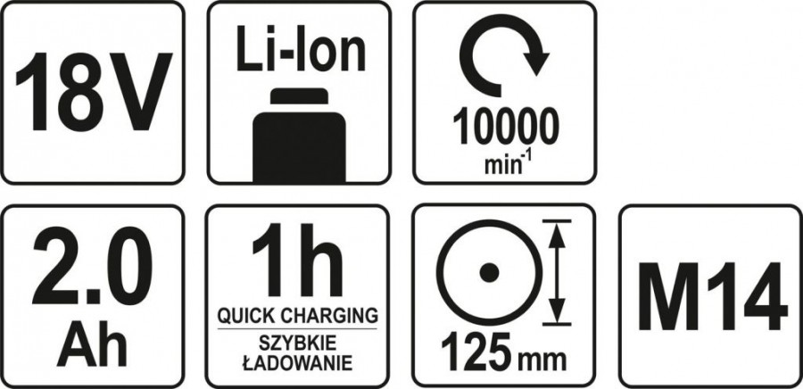 Bruska je vytvořena pro průměr kotouče 125 mm s uchycením M14. Umožňuje brousit povrch kovových předmětů, nebo řezat širokou škálu materiálů.