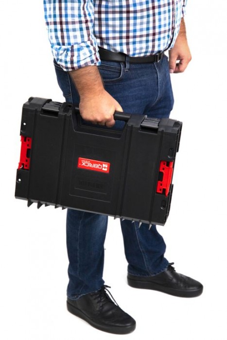 Všestranný modulární box na elektrické nářadí. Zaručuje bezpečné skladování - je vybaven dvojitou ochrannou pěnou. - ochranná pěna- těsnění ve víku - odolné proti prachu- modulární konstrukce- boční spojovací konektory z polyamidu- přední uzavírací klipy z polyamidu- zesílená konstrukce