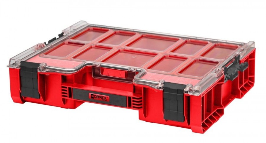 Kvalitní organizér z řady z modulární řady PRO - lze kombinovat s dalšími produkty z řady Qbrick System PRO. Speciální barevné provedení RED HD zajistí ještě větší rázovou odolnost a odolnost proti křehnutí v mínusových teplotách. Čtyři druhy přihrádek pro uspořádání malého a podlouhlého příslušenství – 8 kontejnerů, 2 přihrádky. Víko z tvrzeného polykarbonátu a zesílená žebra, zajistí vysokou odolnost. Polyamidové přední uzavírací klipy, které zajistí 100% těsnění. Pevná a ergonomická rukojeť. Těsnění na víku, které zajistí ochranu proti vodě a prachu. Modulární konstrukce, díky které můžete výrobek propojit s dalšími produkty QBRICK.