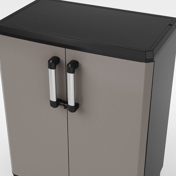 Odolná skříň vhodná do garáže, na chatu, na terasu nebo do sklepa. Pevné panty, možnost uzamčení a odolnost skříně jsou výhodou. Snadná údržba. Nastavitelné police s nosností 20 kg.