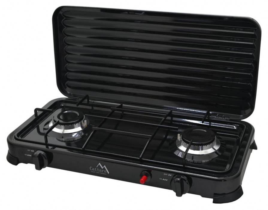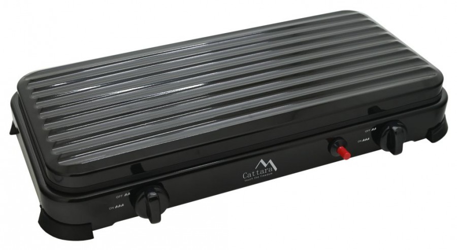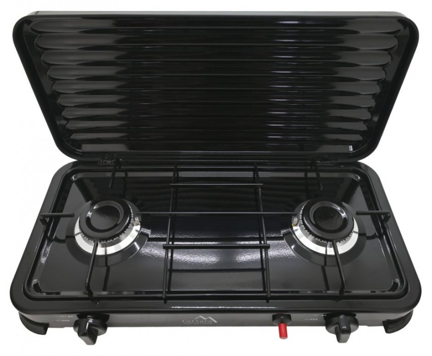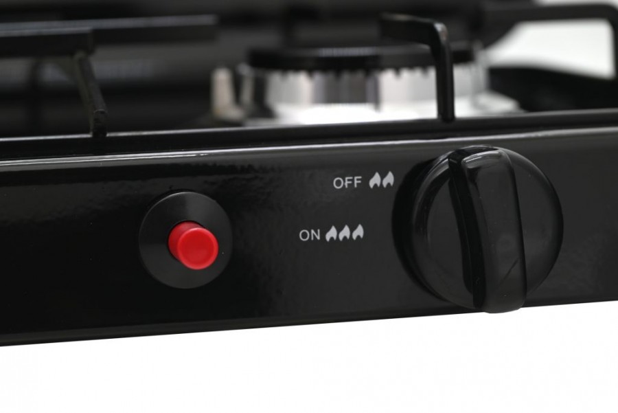 Snadné použití vařiče ve venkovním prostředí je zajištěno 2x hořáky s piezoelektrickým zapalováním a plynule regulovatelným průtokem plynu u každého hořáku zvlášť. Konstrukce vařiče je vyrobena z kovu, zaručuje tak maximální odolnost. Vrchní část je opatřena sklápěcím víkem, bránícímu proti nepříznivému větru. Víko lze v případě potřeby zcela sejmout. Zařízení je určené pro připojení k plynové nádobě, kterou lze připojit na zadní straně zařízení.