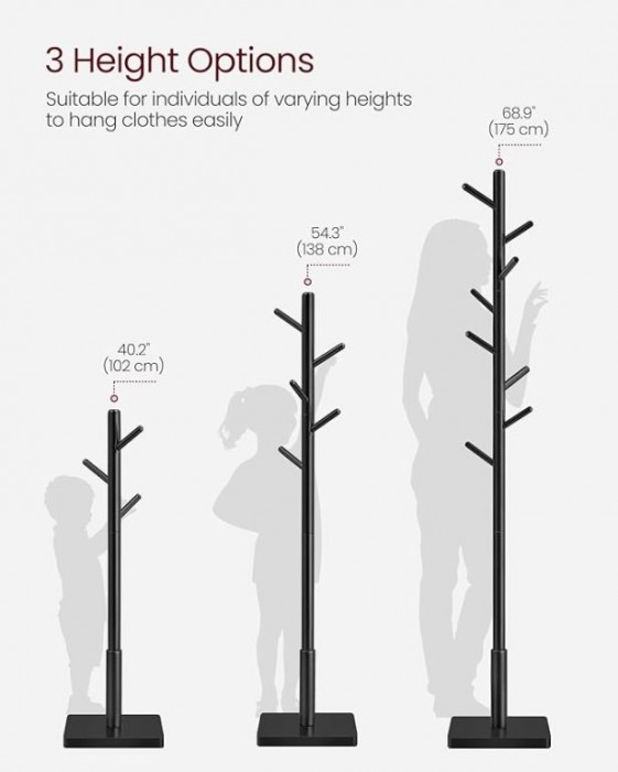 Vneste do svého domova pořádek i eleganci s tímto volně stojícím stojanem na kabáty v moderní černé barvě. Kombinuje funkčnost a minimalistický design, díky čemuž se hodí do předsíně, kanceláře nebo ložnice. Snadná montáž bez nářadí umožní, že jej během několika minut postavíte a ihned začnete používat.