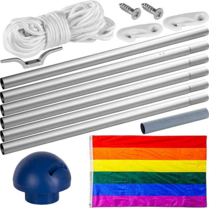 Popis: FLAGMASTER Vlajkový stožár s duhovou vlajkou, 650 cm