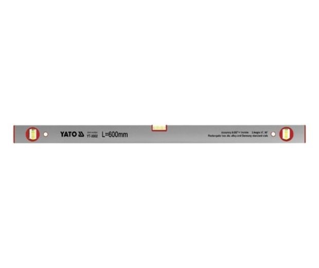 Vodováha se třemi libelami, celková délka 600 mm, robustní profil, plastové koncovky, odolnost proti nárazu.