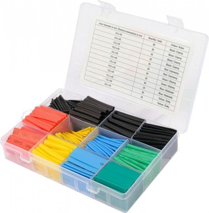 Sada 530ks smršťovacích bužírek s odolností do 125°C.