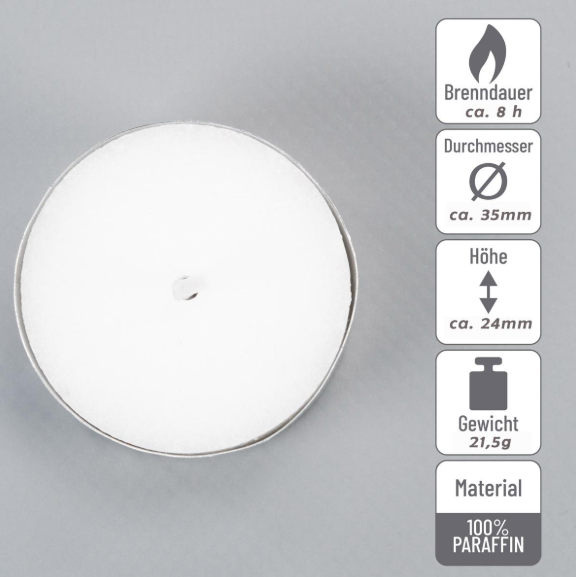 - doba hoření jedné čajové svíčky: cca 8 hodin