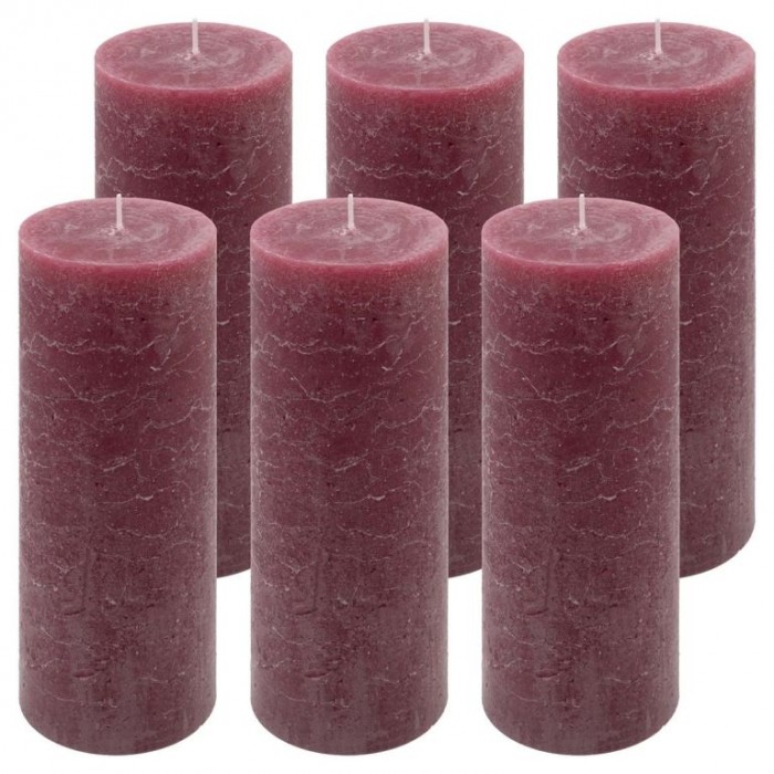 Popis: Bordó parafínová svíčka rustikální 20 cm, 90 h, sada 6 ks