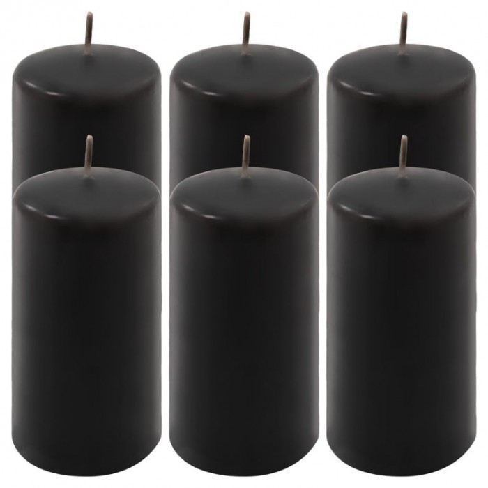 Popis: Černá parafínová svíčka 11,5 cm, 30 h hoření, sada 6 ks