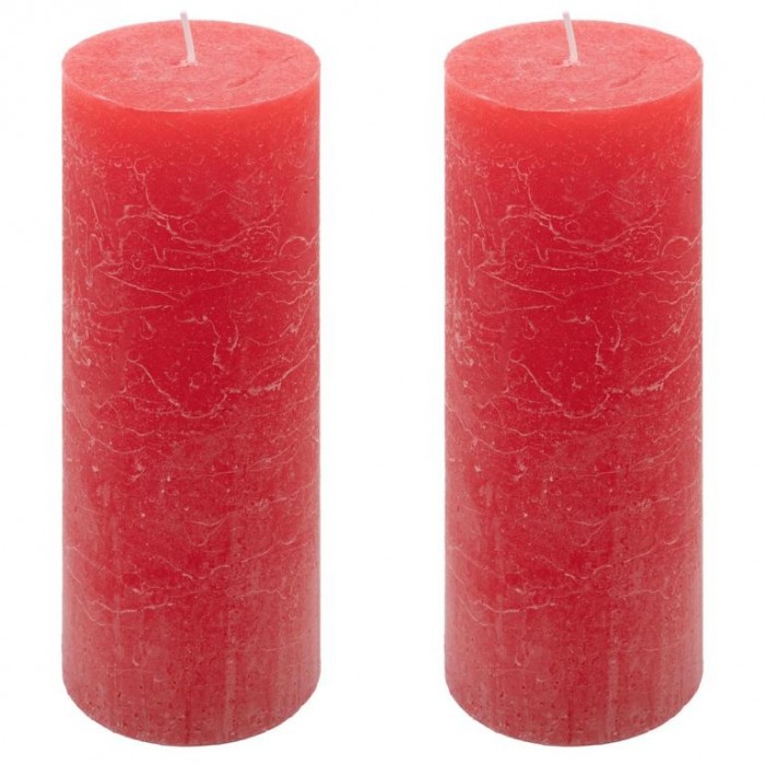 Popis: Červená parafínová svíčka rustikální 20 cm, 90 h, sada 2 ks