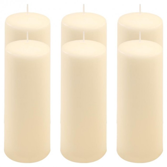 Popis: Krémová parafínová svíčka 20 cm, 80 h hoření, sada 6 ks