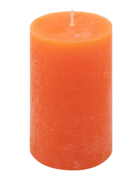 Popis: Oranžová parafínová svíčka rustikální 11,5 cm, 40 h, 6 ks