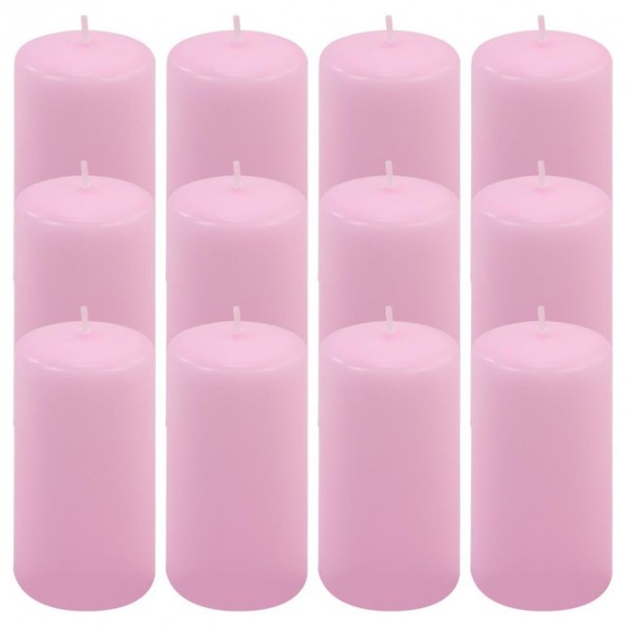 Růžová parafínová svíčka 11,5 cm, 30 h hoření, sada 12 ks
