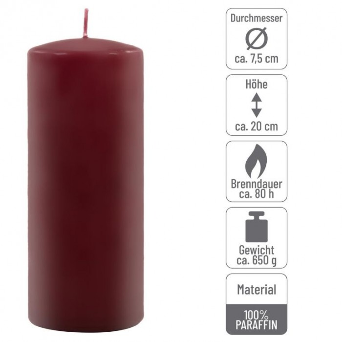 Popis: Vínová parafínová svíčka 20 cm, 80 h hoření, sada 2 ks