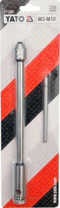 Kvalitní ráčnové vratidlo Yato pro pro závitníky. Hlavní předností tohoto vratidla je jeho použití i ve špatně přítupných místech. Do tohoto vratidla lze upnout závitníky M3 - M10 s čtyřhranným dříkem (dle rozměrů DIN).