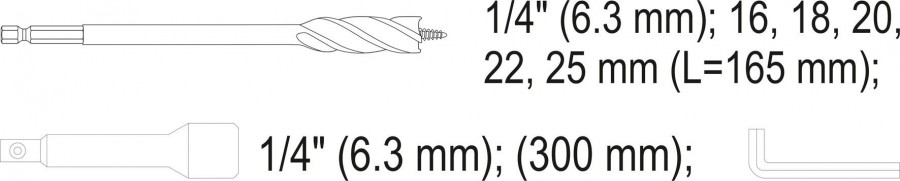 Popis: Sada vrtáků do dřeva HEX 16-25mm