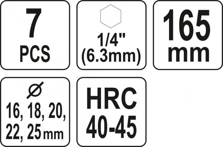 Vrtáky v sadě mají průměry 16; 18; 20; 22; 25 mm a pro rychlé a efektivní vrtání jsou opatřeny 4 čepelemi.