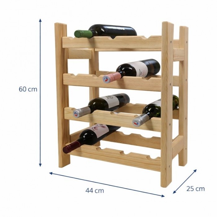 Popis: Dřevěný stojan na víno 16 lahví 44×60×25 cm, česká výroba