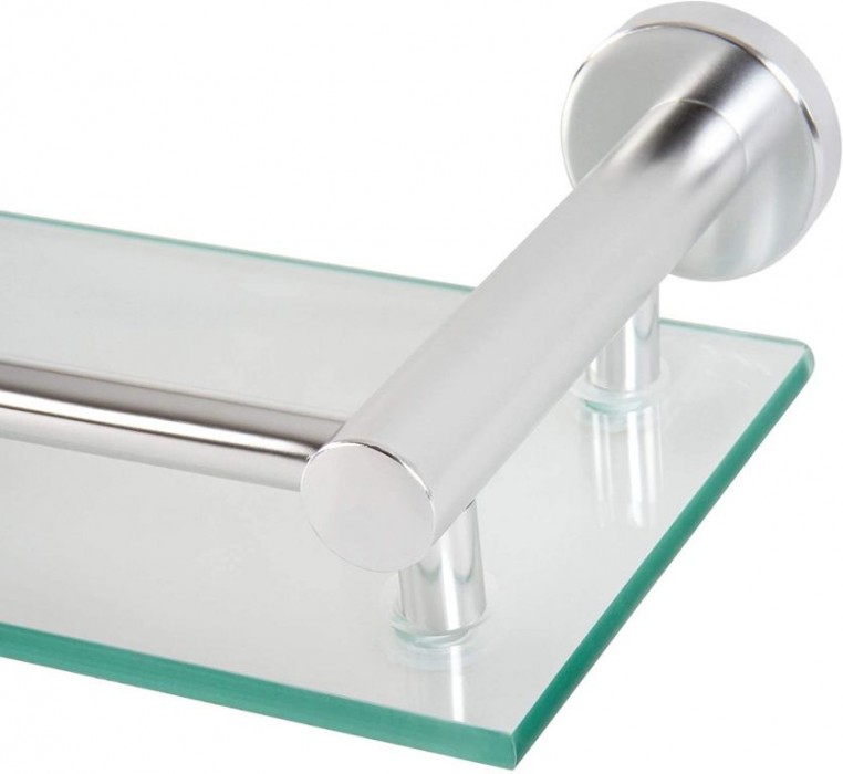 Police do koupelny nabízí víceúčelové využití, například jako praktický úložný prostor pro příslušenství pro péči o zuby, praktický úložný prostor nad vanou nebo ve sprše. Kombinace hliníku a tvrzeného skla vypadá lehce a elegantně, hodí se do každé koupelny a rychle se instaluje. Praktický koupelnový doplněk, který vypadá dobře a díky jemnému designu ho lze kombinovat s mnoha styly vybavení.