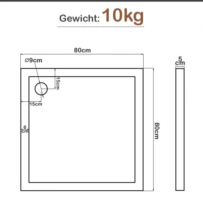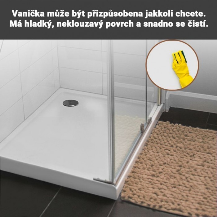 Tento konkrétní model sprchové vaničky je vyroben ze spolehlivého akrylátu a má hloubku 5 cm, což umožňuje snadnější přístup do sprchy. Stylová a elegantní sprchová vanička s velmi tenkým profilem. Má snadno čistitelný lesklý povrch. Tento model je třeba zvednout 12 cm od podlahy. Oboustranná instalace - podstavec lze namontovat podle potřeby. Poznámka: Nožičky k vaně a odtoková souprava nejsou součástí dodávky.