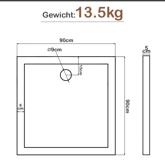 Popis: Aquamarin Sprchová vanička čtvercová, 90 x 90 cm