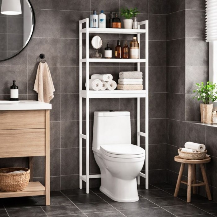 Koupelnová police nad WC 63x26x170 cm, 3 patra, bílá