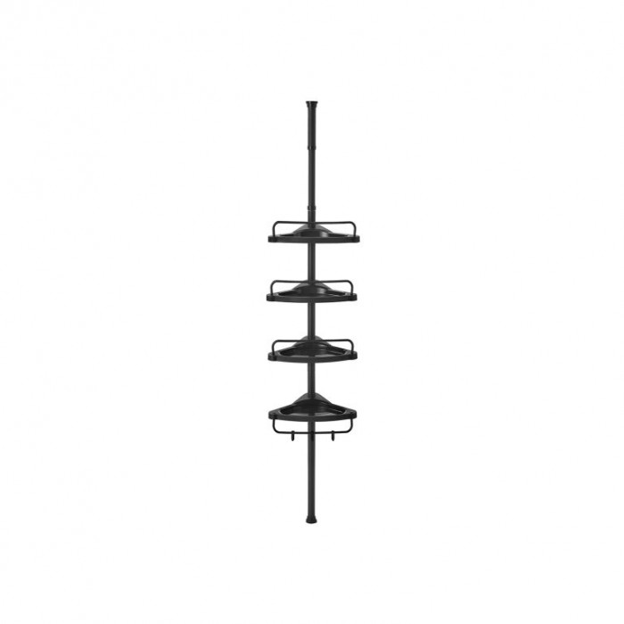Proměňte roh koupelny v praktický úložný prostor díky této teleskopické polici. Čtyři patra nabídnou dostatek místa pro šampony, sprchové gely i další potřeby. Elegantní černé provedení dodá vaší koupelně moderní vzhled.