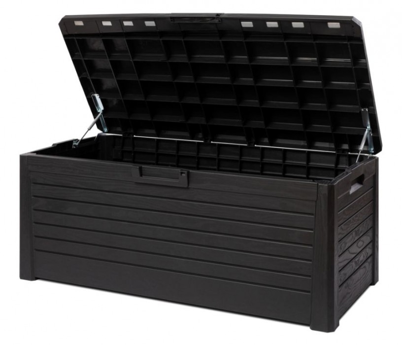 INOVATIVNÍ FUNKCE: Pro snadné otevírání víka boxu jsou zde písty (plynové vzpěry), které Vám pomohou s každodenním používáním. Navíc je úložný box vyroben v imitaci dřevěného povrchu, což dodá Vaší zahradě nejen praktický úložný prostor, ale i stylový vzhled.