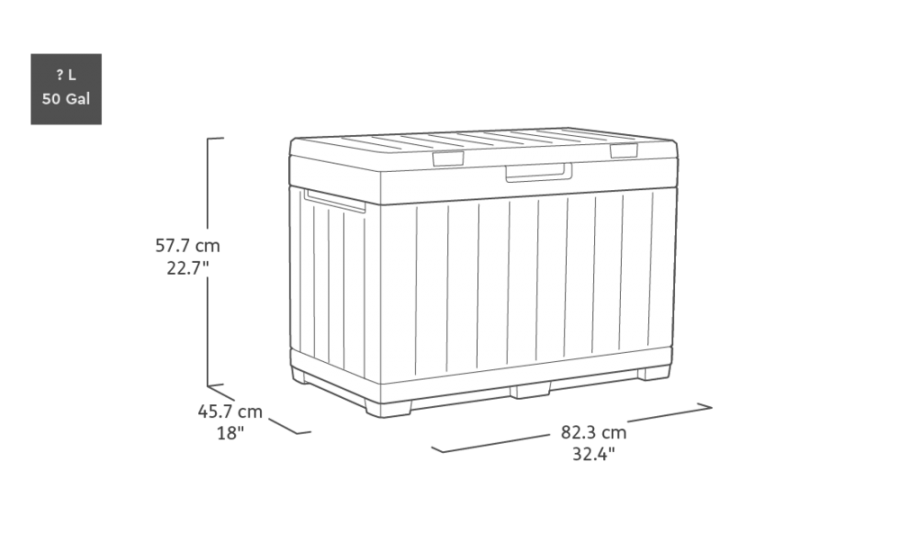 Plastový box s úložným prostorem o objemu 190 l. Odkládací box umožňuje pohodlně uložit vše, co chcete mít po ruce na Vaší zahradě.
