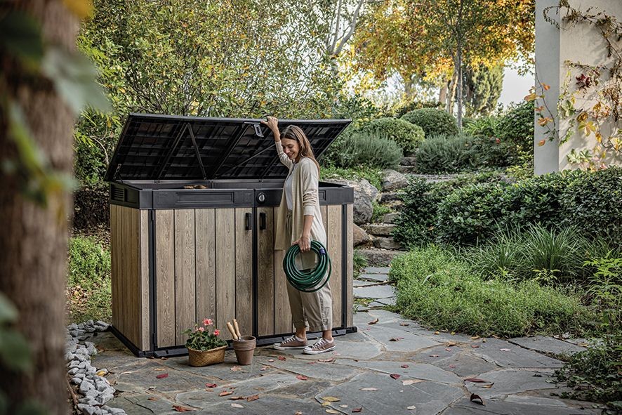 Jednotný design: Skříň můžete doplnit dalšími výrobky z řady SIGNATURE, jako je zahradní domek či vysoká skříň, pro dokonalý vzhled celé zahrady.