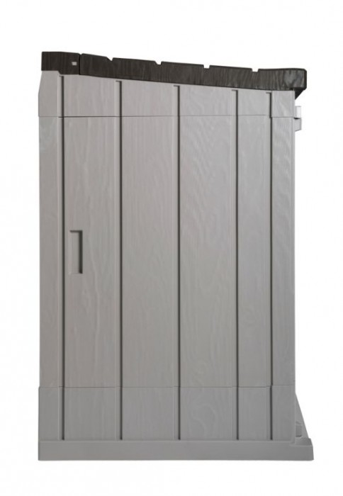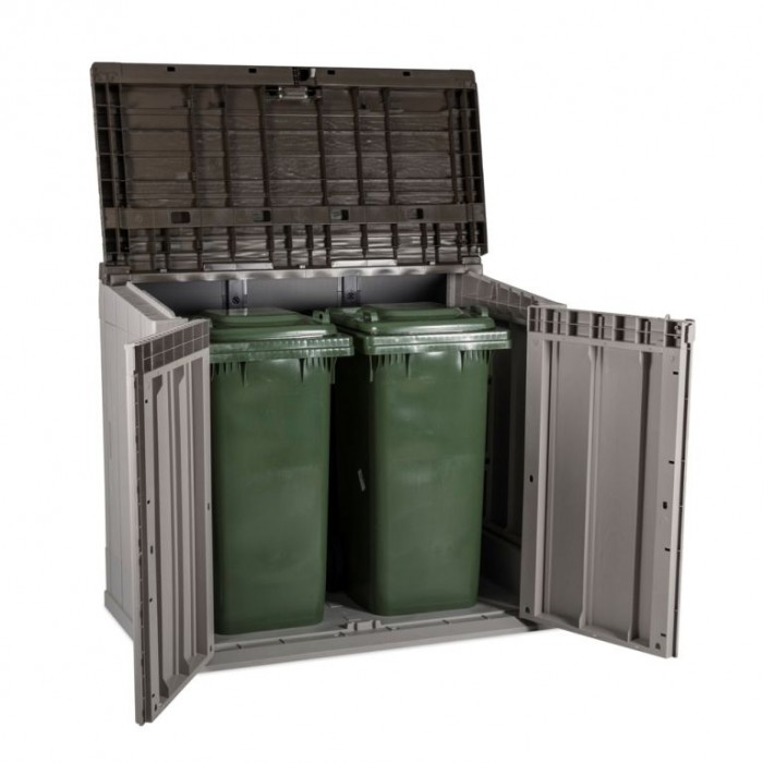 SNADNÉ OTEVÍRÁNÍ A PŘÍSTUP: Dvoukřídlé dveře a otevírací víko nabízí mnoho možností využití. Bez námahy a s elegancí zvládnete přístup i manipulaci s obsahem. Šikmý práh dále usnadňuje přístup dovnitř, umožňuje snadné umístění popelnic či jiných objemných předmětů. Zajímavé barevné provedení kombinuje béžové stěny a hnědé víko.