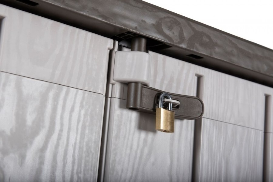 EKOLOGIE A ODOLNOST VŮČI POČASÍ: Vyrobeno z kvalitního recyklovaného plastu, naše skříň odolává silnému slunečnímu záření i nelítostným vlivům počasí, což zaručuje dlouhodobou spolehlivost a estetický vzhled. S možností uzamykání máte jistotu, že Vaše cenné zahradní vybavení je v bezpečí.