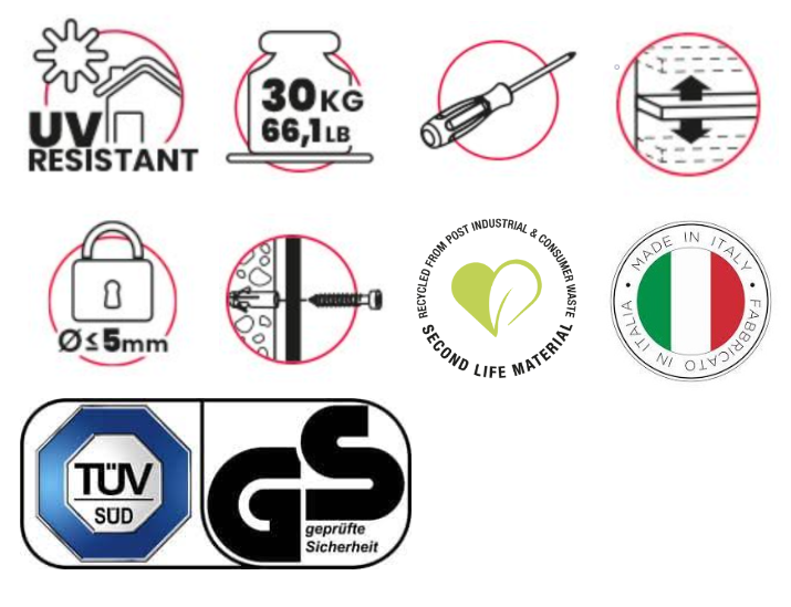 CERTIFIKACE: S certifikací TÜV SÜD naši zákazníci mohou mít naprostou jistotu, že skříňka splňuje nejvyšší standardy kvality a bezpečnosti. Udržte svou zahradu dobře uspořádanou a připravenou k přivítání každé sezóny. Nechte Vaši zahradu zazářit s elegantní a praktickou skříňkou, základem pro pořádek a styl ve Vaší venkovní oáze.