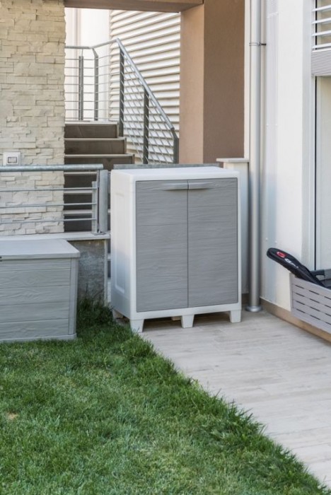 Objevte dokonalé řešení pro Vaši zahradu s naší dvoudvéřovou plastovou skříňkou v módním provedení dvou elegantních světle šedých odstínů. Přinášíme Vám kombinaci praktičnosti a stylové estetiky s věrností k přírodě díky realistické imitaci dřevěného povrchu.