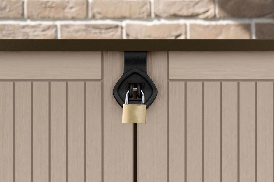 Úložná skříňka se vyznačuje jednoduchým a elegantním designem, struktura povrchu připomínající přírodní dřevo. Možnost instalace vnitřní police zvyšuje funkčnost výrobku. Úložná skříň se hodí všude, kde je nutné uschovat zahradní doplňky, nářadí nebo třeba popelnice. Robustní rám chrání uložené předměty proti vlhkosti, zatímco vysoce kvalitní plastové materiály zajistí trvanlivost výrobku po mnoho let.