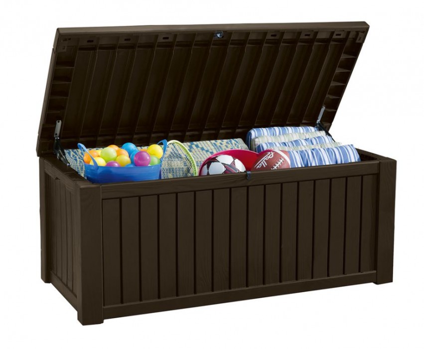Odkládací box umožňuje pohodlně uložit vše, co chcete mít po ruce na Vaší zahradě. Velký plastový box s úložným prostorem o obsahu 570L. Vyznačuje se velkou kapacitou, díky tomu se do něj vejde například - zahradní nářadí, polštáře nebo přikrývky. Jeho montáž je velmi jednoduchá a nevyžaduje žádné specializované nástroje. Mechanismus, který usnadňuje otevření víka je nepochybně velkou výhodou produktu.