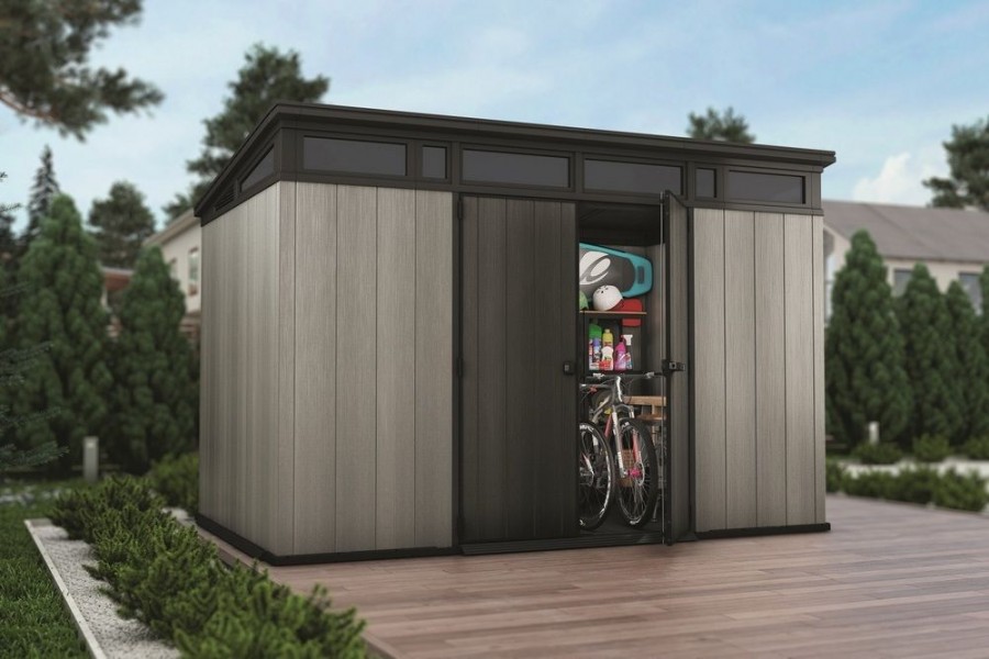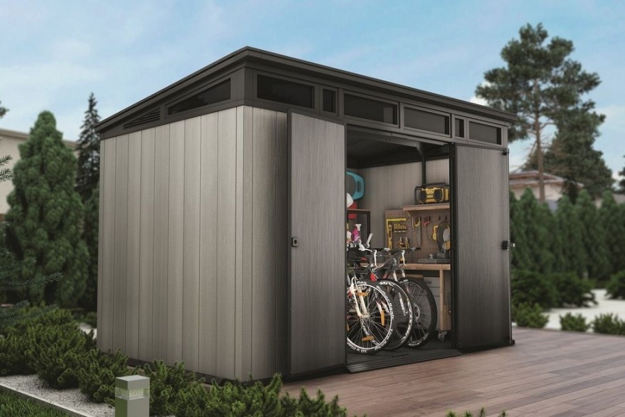 Tento domeček má vysoce kvalitní materiál odolný vůči nepříznivým povětrnostním podmínkám. Domek je ideální nejen na uschovávání nářadí a zahradních doplňků, ale také na sekačku nebo grill. Jeho hlavní výhody jsou stabilní, zpevněná ocelová konstrukce, pevná střecha a široké dvojité dveře.