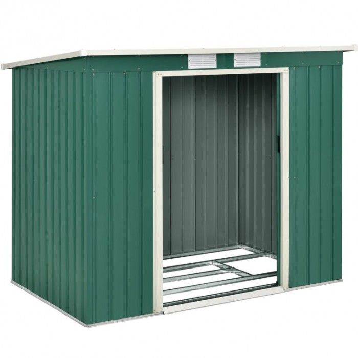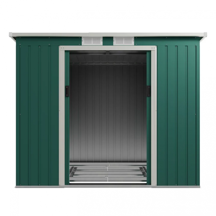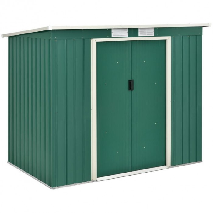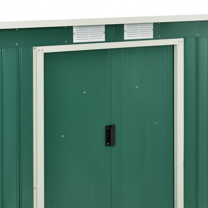 Užijte si pořádek a klid na své zahradě díky tomuto prostornému domku na nářadí. Moderní tmavě zelený design se hodí do každého prostředí a poskytne bezpečné místo pro vaše vybavení i v zimě.