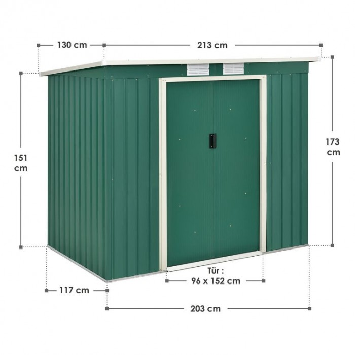 Zahradní domek na nářadí, 213 x 130 x 173 cm, tmavě zelený