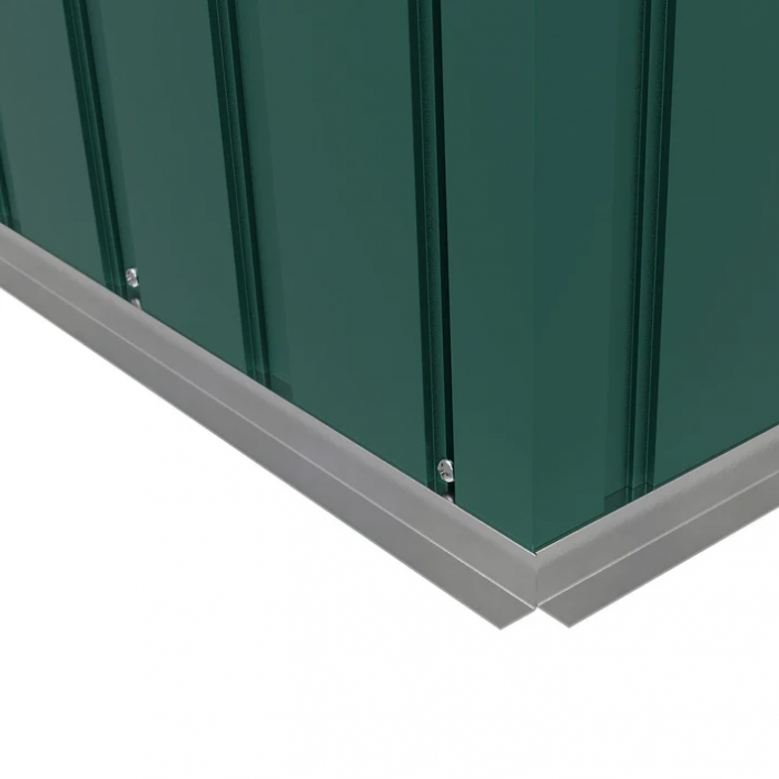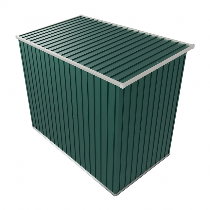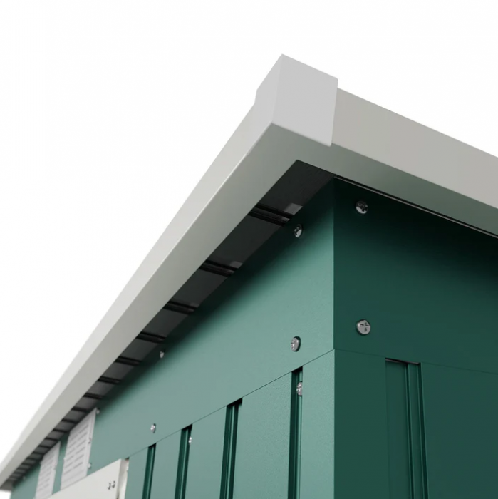 Stabilní konstrukce z pozinkovaného plechu zajišťuje dlouhou životnost a minimální údržbu. Pultová střecha a základový rám usnadňují montáž a chrání obsah před vlhkostí i nečistotami.