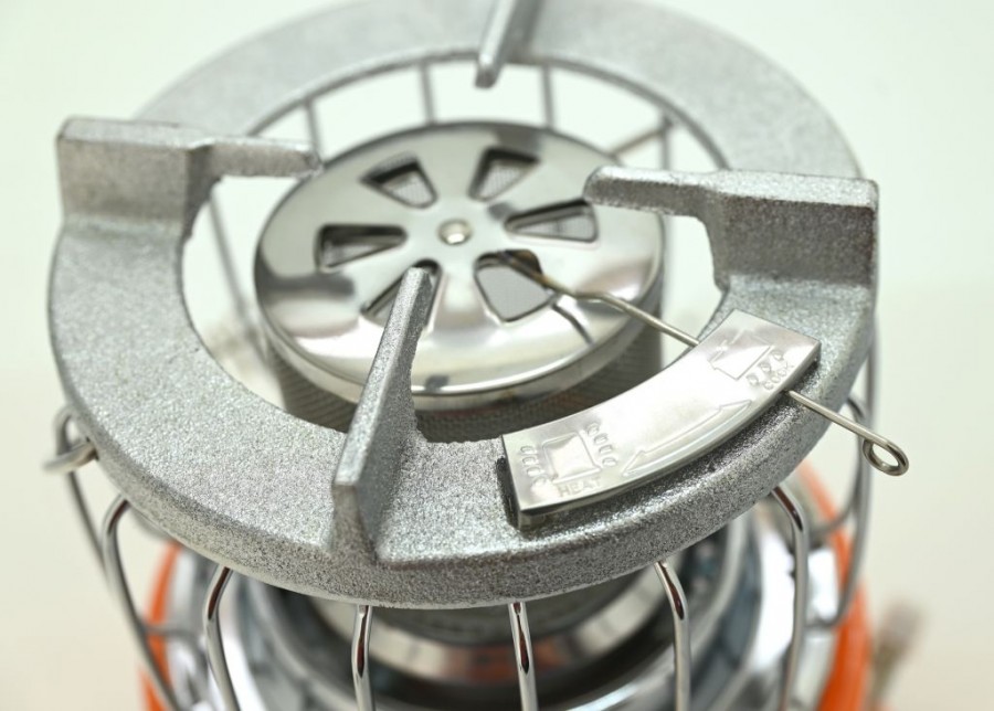 Hořák zařízení je opatřen ocelovou síťovinou s výbornými tepelnými vlastnostmi. Na vrchní části lze nastavit proudění tak, aby bylo možné umístit hrnec (max. průměr 23 cm).