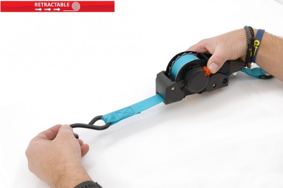 Pro upnutí se využívá celokovová ráčna s jisticím mechanizmem. Ráčna je navíc opatřena samonavíjecím mechanismem, kdy po stisknutí tlačítka navíjí zpět popruh po celé délce. Konce popruhů jsou osazeny kovovými háky s povrchem z tvrzeného plastu.
