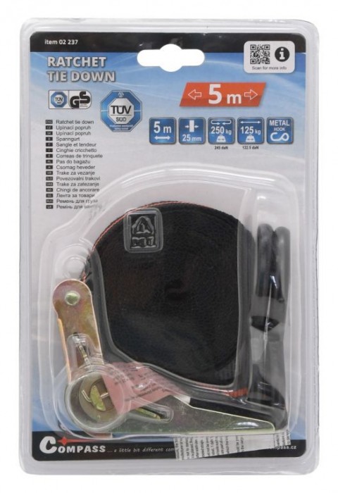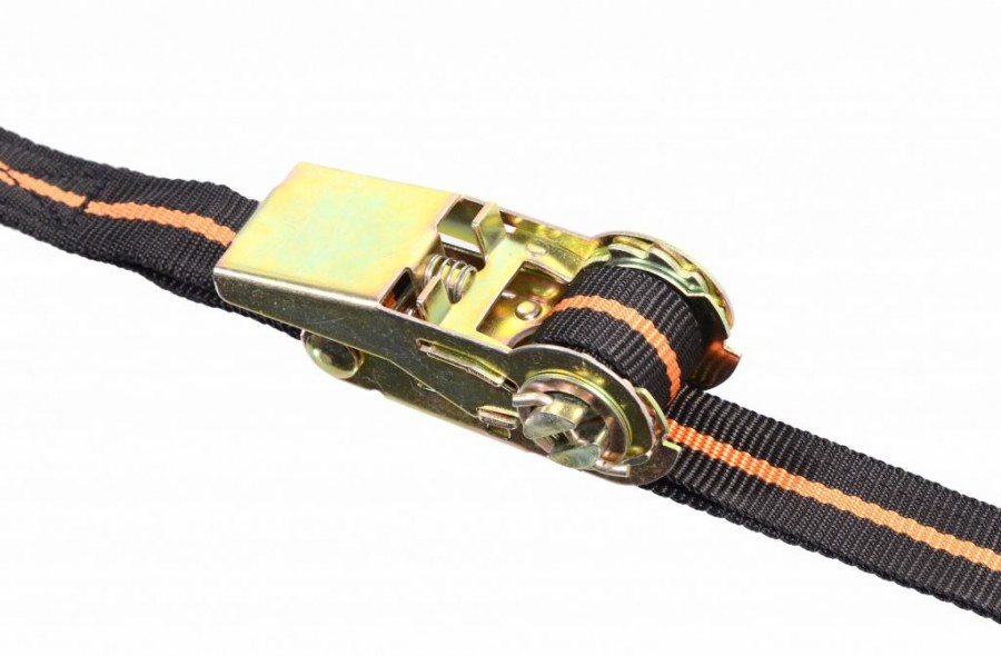 Pro upnutí se využívá celokovová ráčna s jisticím mechanizmem a háky na koncích popruhů. Popruh tak najde široké uplatnění při upevňování předmětů. Zajistěte si správnou bezpečnost nákladu.