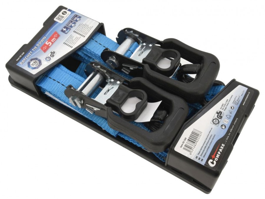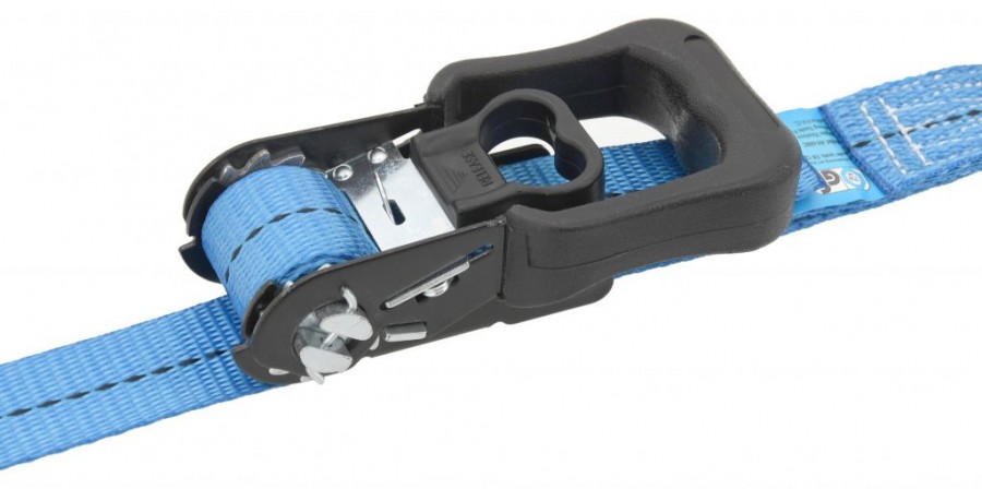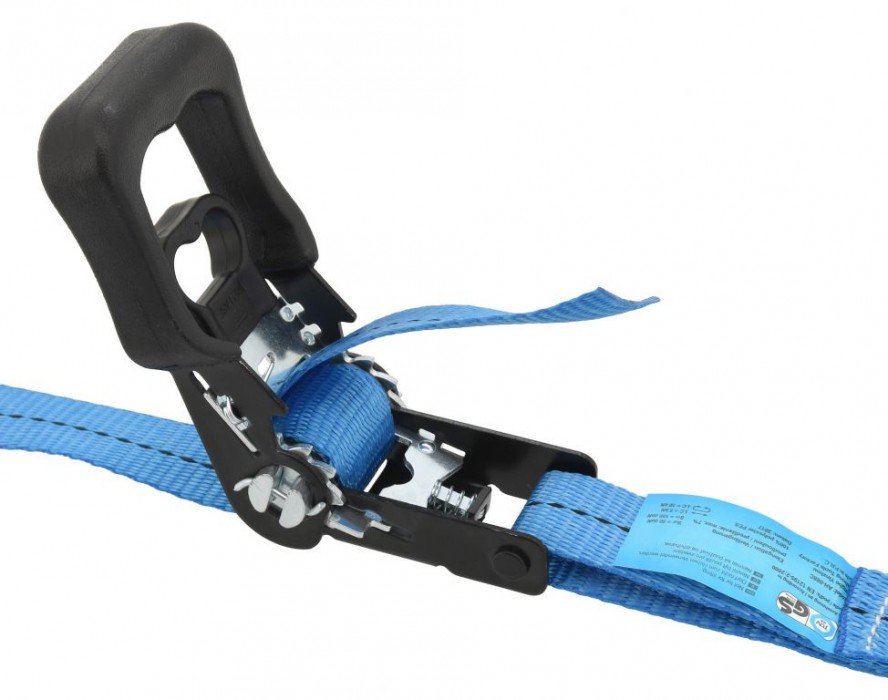 Pro upnutí se využívá celokovová ráčna s jisticím mechanizmem. Konce popruhů jsou osazeny kovovými háky. Popruh tak najde široké uplatnění při upevňování předmětů. Zajistěte si správnou bezpečnost nákladu.