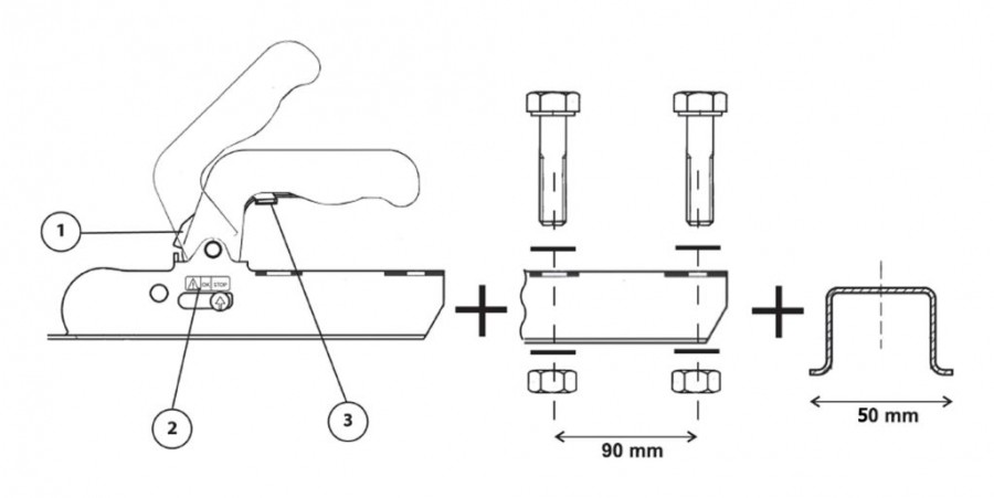 Celokovová konstrukce kloubu je opatřena mechanismem, který zajistí pevné sevření standartní koule tažného zařízení s průměrem 50 mm.
