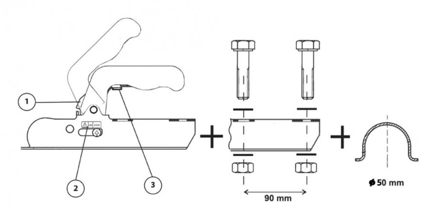 Celokovová konstrukce kloubu je opatřena mechanismem, který zajistí pevné sevření standartní koule tažného zařízení s průměrem 50 mm.