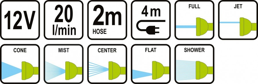Součástí balení je vodní vak a komplet postřikovací pistole se 7 funkcemi.
