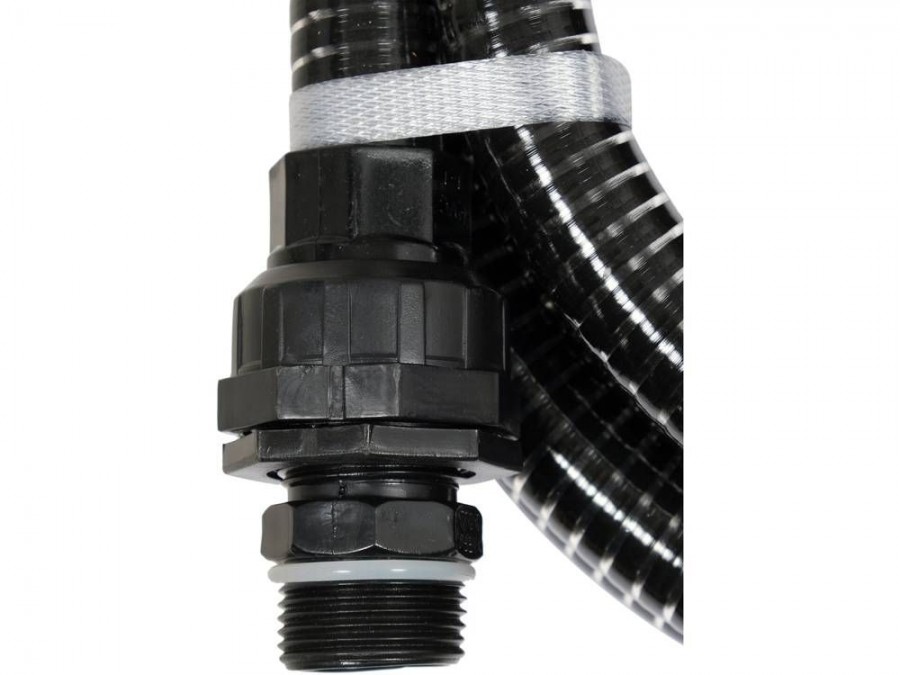 Flexibilní sací hadice pro čerpadlo a hydrofory se zpětným ventilem a sítkem proti znečištění.